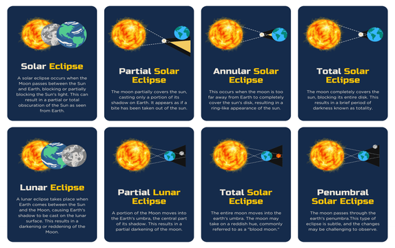 Annular solar eclipse:During an annular eclipse, the Moon is at its farthest from Earth, appearing smaller and creating a "ring of fire" effect as it partially blocks the Sun.